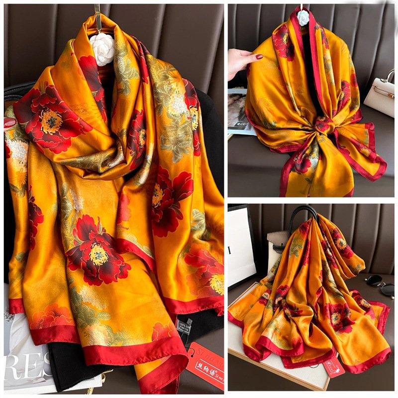 Women’s High-end Satin Long Scarf Summer Sunscreen.
